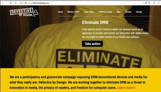 Defective by Design, a grassroots organization (see the Detective By Design figure) has campaigned to “eliminate DRM as a threat to innovation in media.” Most recording companies and music distributors now sell music without embedded DRM technology. However, DRM is still heavily used to protect motion pictures, television programs, ebooks, and documents.
